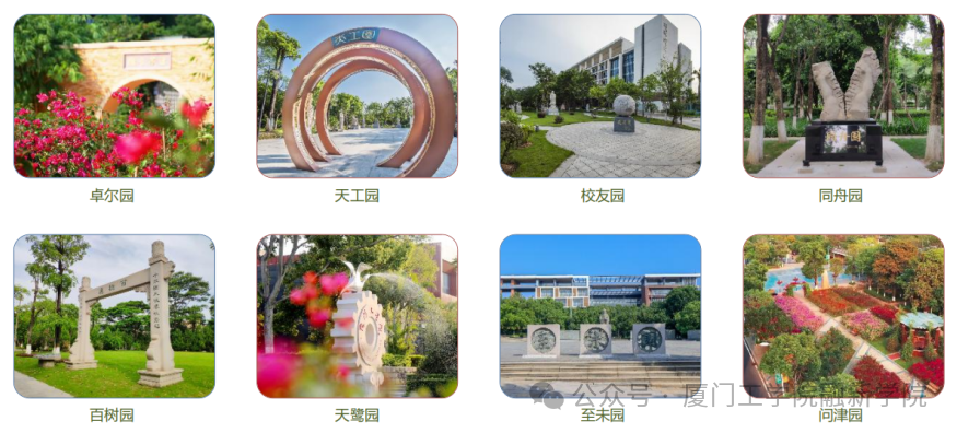八园:卓尔园、至未园、问津园、百树园、校友园、同舟园、天工园、天鹭园。