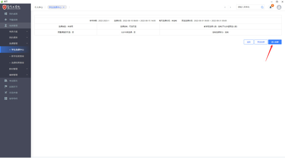 5.若需退选\改选,则点击【选课结果查看及退选】界面,点击【退选】后重新选课即可。