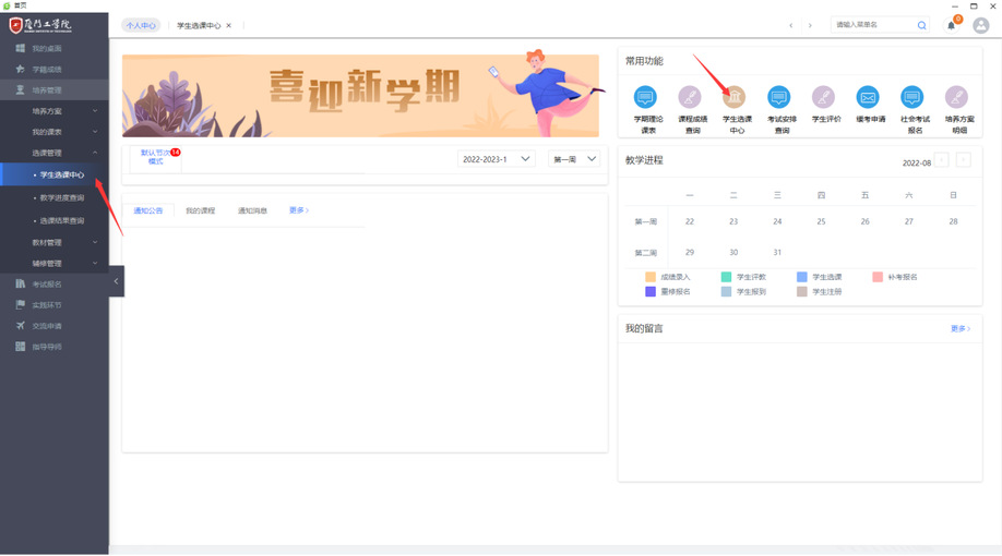 2025-2026学年体育公共课选课具体事宜通知如下: 一、 选课对象: 厦门工学院2025级本科统招学生 二、 选课时间: 2025年9月8日12:30-9月9日15:30 三、选课形式: 不组织统一选课,学生利用电脑或者手机在选课时间内进行选课。 四、注意事项: 1. 需在规定时间内完成选课,逾期不予以办理。 2. 2025级专升本、2025级参军复员同学无需选课(参军复员同学需提交《厦门工学院免修课程申请表》,需在10月10日前提交完毕)。 3. 本学期第一节体育课为游泳课,请同学们携带泳衣泳帽泳镜,在一号田径场主席台前找任课教师集合。 (集合时间:第3-4节10:05,第5-6节13:45,第7-8节16:05。) 五、详细的操作说明 1.教务系统登录操作方法见: 通过网页端进入厦门工学院信息服务平台 https://xitmst.xit.edu.cn/ 登录方法一:可用微信直接“扫一扫”。 登录方法二:直接输入。账号:学工/工号,密码:若忘记,可看与厦门工学院信息服务平台的历史聊天记录。 进入之后选择【教务学工】-【教务系统】。登录有问题请咨询【教育信息化运营部】:0592-6667551。 2.体育课选课操作说明 点击【培养管理】-【选课管理】-【学生选课中心】。