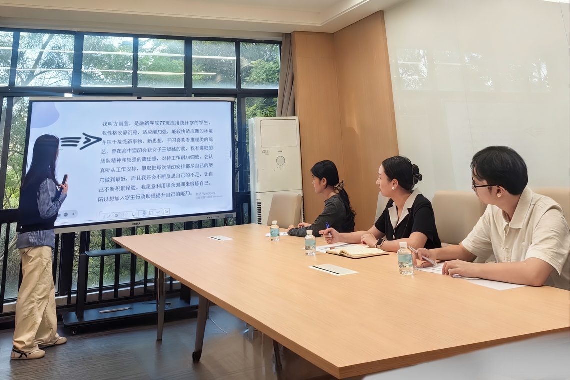 10 月 30 日至 31 日下午,融新学院学生助理选拔面试顺利开展。本次面试由学院办公室主任李丹嫣,及学院秘书颜晓艺、李云涛老师共同组成评审团,对候选人进行全方位、深层次考察。