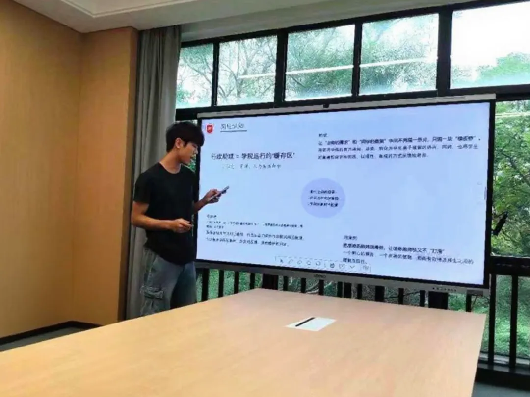 面试环节中,评审团先通过候选人的 PPT 展示,直观评估其与岗位的适配度;随后以情景化提问为切入点,深入考验候选人的临场应变与问题解决能力。本次选拔目标清晰,旨在发掘并录用集责任心、协作力、执行力、思维力于一身的优秀学生助理,为学院日常工作高效推进注入新鲜动力。