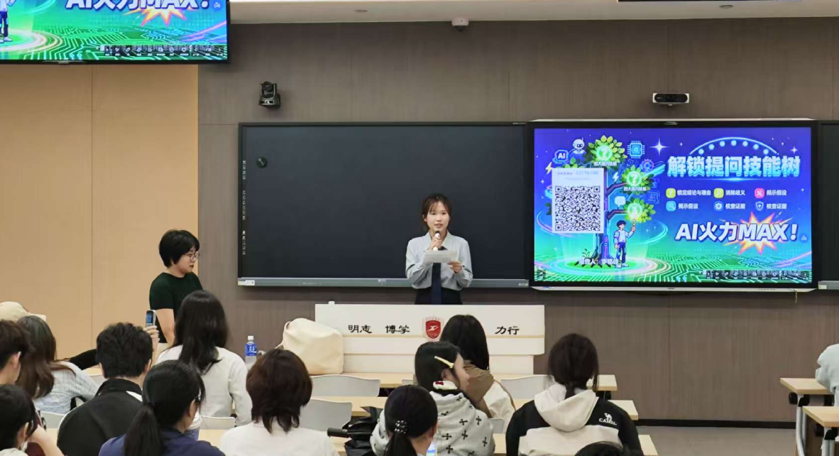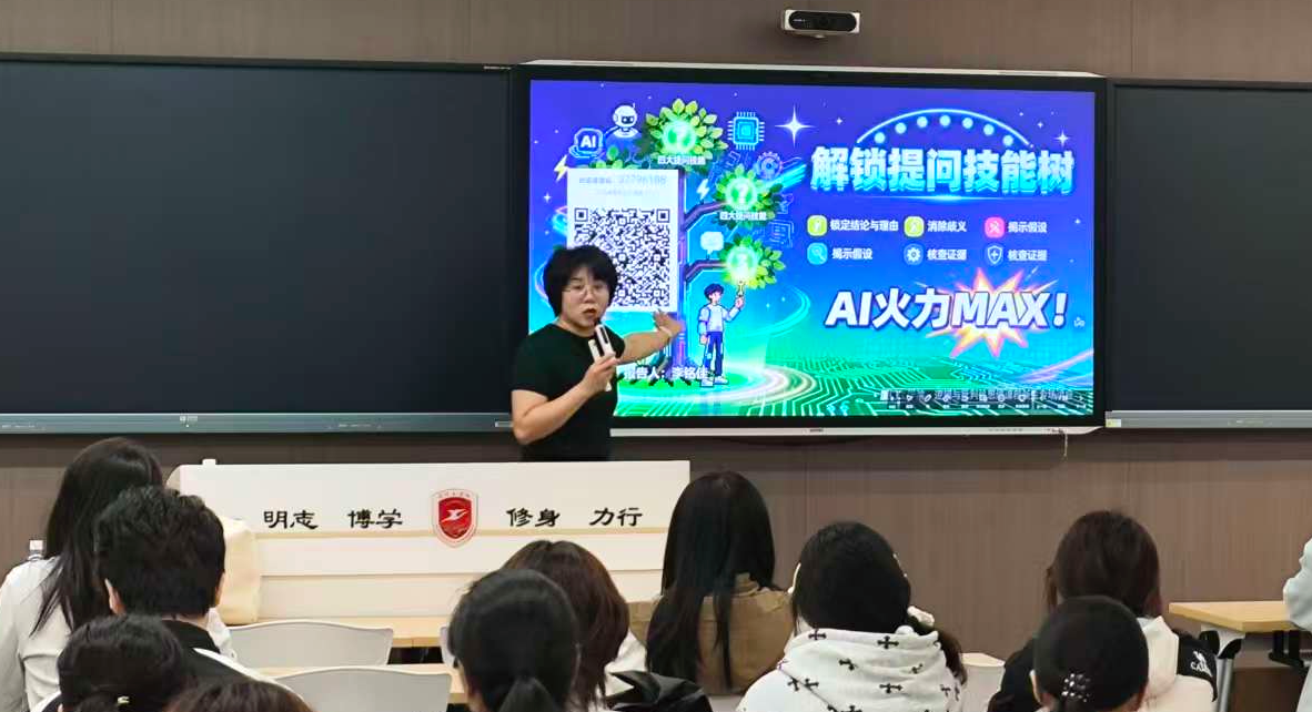 2025年11月11日,“融新讲堂”第二期,由李铭佳老师主讲的《解锁提问技能树,AI火力MAX!》讲座在明德226顺利开展。