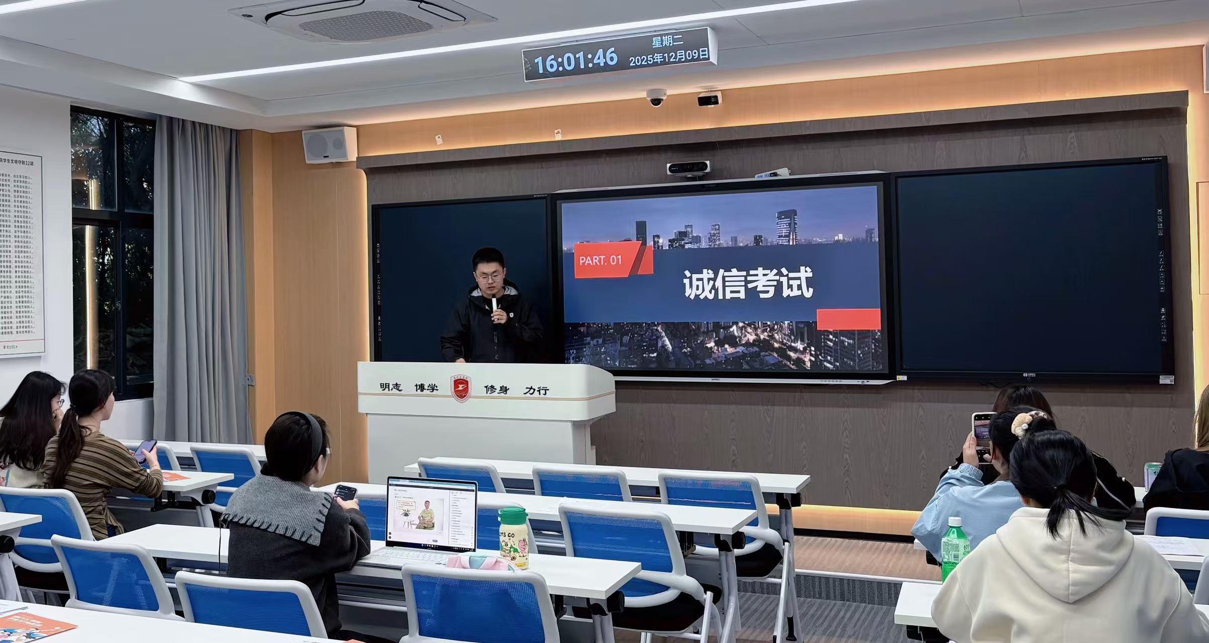 考试是学业的检阅,更是人格的锤炼。分数有价,诚信无价;成绩有高低,品格无折扣。倡议大家自觉遵守考场纪律,不携带违规物品,不触碰作弊红线,杜绝夹带抄袭、传递答案、代考替考等违规违纪行为。学院将严格执行考试管理规定,规范监考流程、严肃处理违纪行为,让违规者付出代价、让诚信者获得尊重,共同守护考试公平。