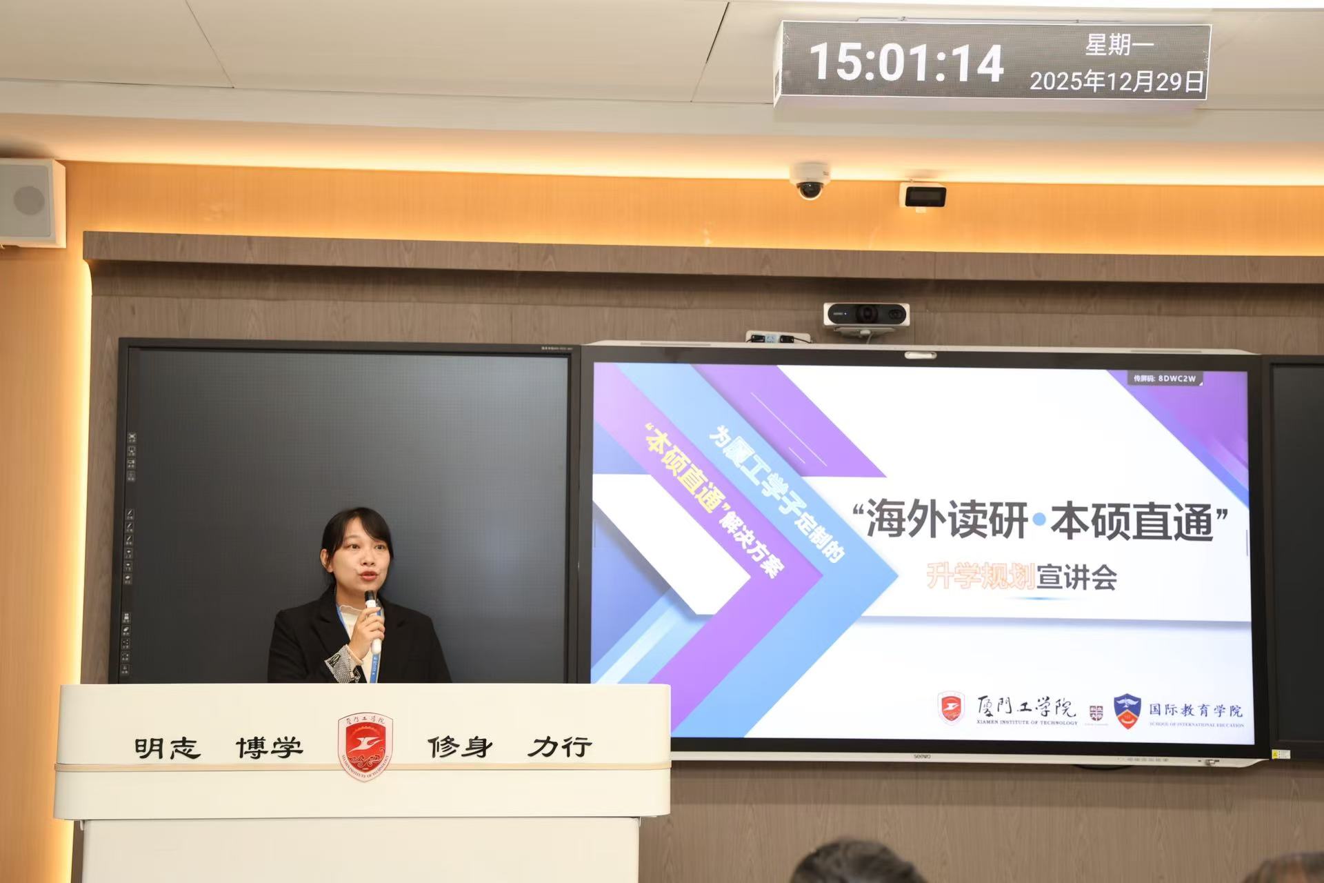 国际教育学院在宣讲中重点强调,“海外读研”不仅是学校推进国际化建设的关键抓手,更是厦工学子实现学历跃升的重要途径。讲座开篇,学院结合厦门工学院2025年升学数据点明核心:在考研竞争日趋激烈的背景下,提升学历层次成为助力大学生拓宽发展路径、增强核心竞争力的重要选择。
